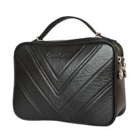 Небольшая кожаная женская сумка Lavello (Лавелло) выполнена из натуральной кожи черного цвета. Сумка состоит из основного отделения на молнии, внутри которого отделение на молнии. Спереди и сзади карманы на молнии. Кожаный плечевой ремень регулируется по длине...